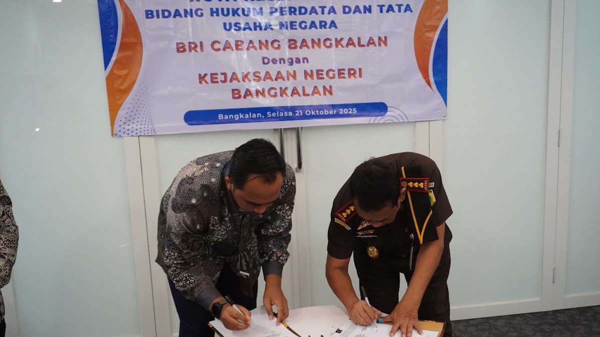 Penandatanganan MoU dilakukan langsung oleh Pimpinan BRI Cabang Bangkalan, Satrio Adrianto, dan Kepala Kejaksaan Negeri Bangkalan, Noer Adi. Kerjasama tersebut menjadi bentuk konkret komitmen bersama dalam menghadapi dan menyelesaikan persoalan hukum, khususnya yang berkaitan dengan penyelamatan aset negara serta perlindungan hukum dalam operasional perbankan.