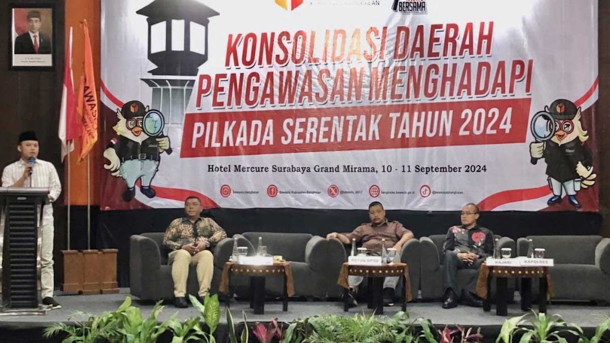 “Kehadiran kami sebagai bentuk komitmen untuk mendukung Bawaslu dalam menjaga integritas Pilkada,” ujar Hakim, saat menghadiri acara Konsolidasi Daerah Pengawasan yang digelar Badan Pengawas Pemilihan Umum (Bawaslu) Bangkalan, di Hotel Mercure Surabaya Gran Mirama, Selasa, (10/9/2024).