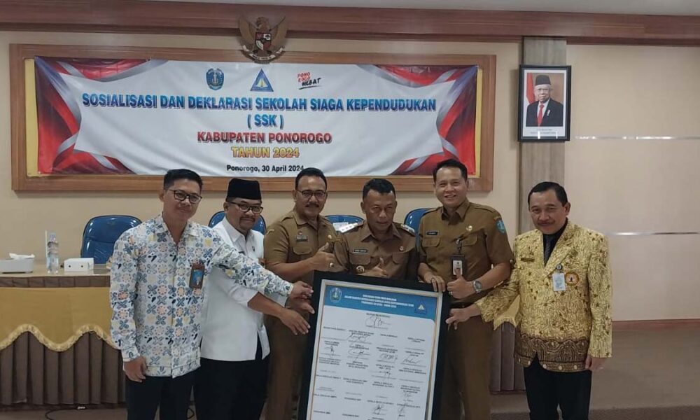 PABIASA.COM, Ponorogo – Bupati Ponorogo, Sugiri Sancoko, bersama stakeholder terkait menandatangani Sosialisasi dan Deklarasi Sekolah Siaga Kependudukan (SKK) di Aula Bappeda Kabupaten Ponorogo, Selasa (30/4/2024). Hal tersebut...